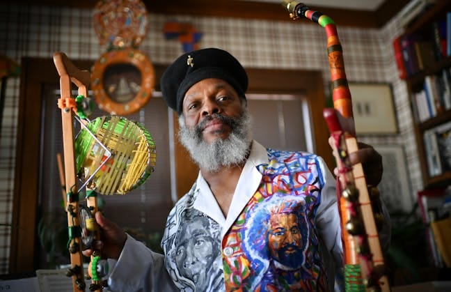 The band maintained what I would describe as a state of accessible mystery. They checked in with the audience to make sure they were connecting, but did not attempt to be overly familiar or share long stories. Douglas had an attention grabbing look that gave him a certain “Master of Ceremonies” air. He wore a white coat with the faces of significant figures in recent civil rights struggles painted on the front, and a beret, but with a more militaristic look than the ones commonly thought of on Dizzy Gillespie’s head. The garb of a soul doctor, a shaman of light and sound, a revolutionary.